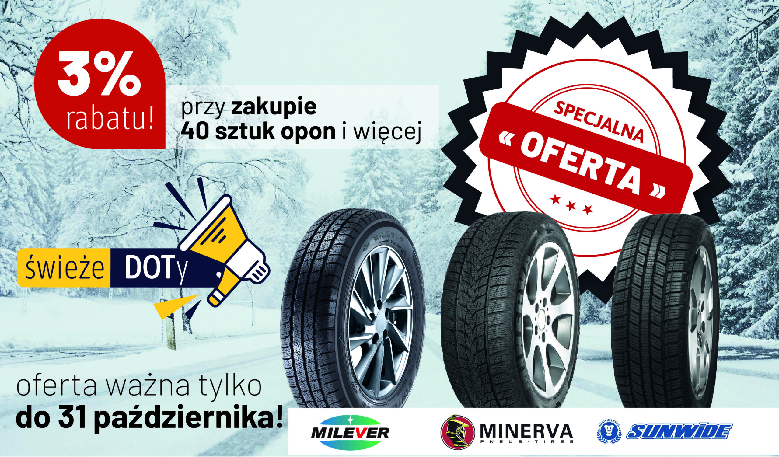 pragniemy poinformować o uruchomieniu specjalnej oferty promocyjnej na opony marek Sunwide, Milever oraz Minerva – świeże DOTy.
