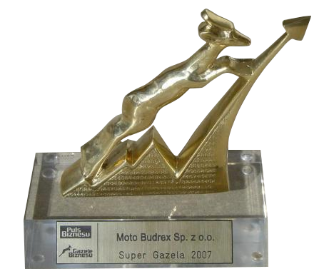 Super Gazela przyznawana jest przez najbardziej poczytny polski dziennik traktujący o sprawach rynkowych, „Puls Biznesu” (nominacja na 2024). Nasza firma otrzymała Super Gazelę jako efekt wielu lat starań i stawiania coraz wyżej poprzeczki. Sprawdzono nas dokładnie: poziom naszych usług, zadowolenie Klienta, jak też wielkość obrotów firmy Moto Budrex.